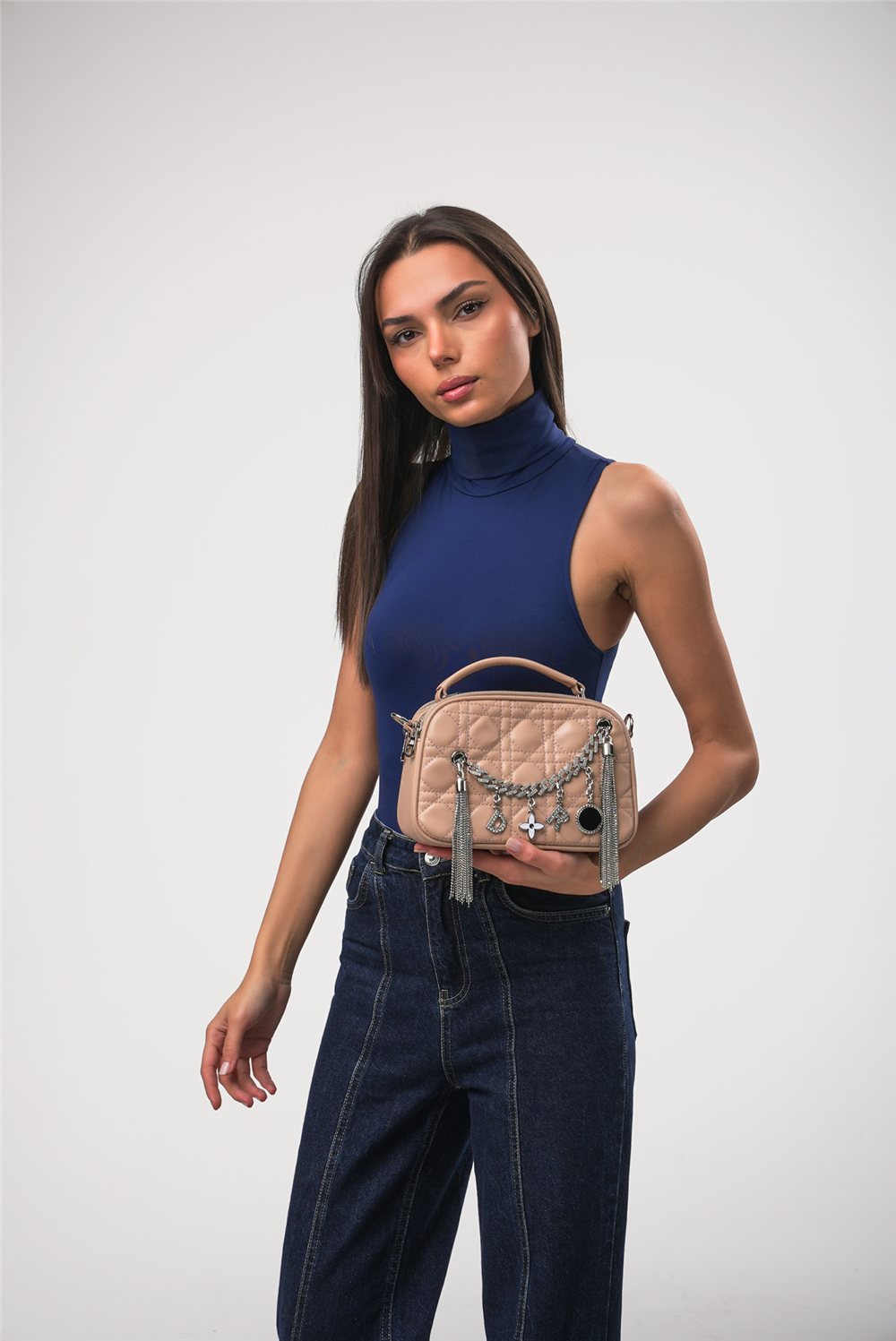 Çok Yönlü Kullanım: İster zarif el sapı ile el çantası olarak, ister ayarlanabilir askısı sayesinde çapraz taşıyarak günün her anına uyum sağlayabilirsiniz.
