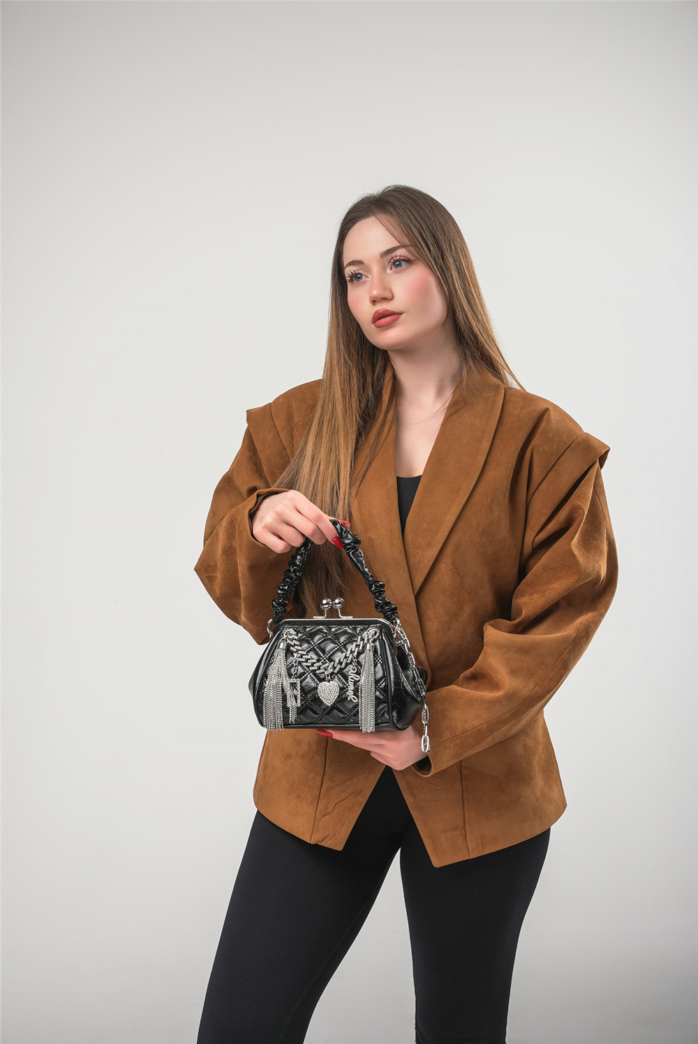 Zarif ve Fonksiyonel Tasarım: Minimal boyutları sayesinde hantal görünmeden telefon, cüzdan ve temel makyaj malzemeleri gibi ihtiyaçlarınız için yeterli alan sunar.